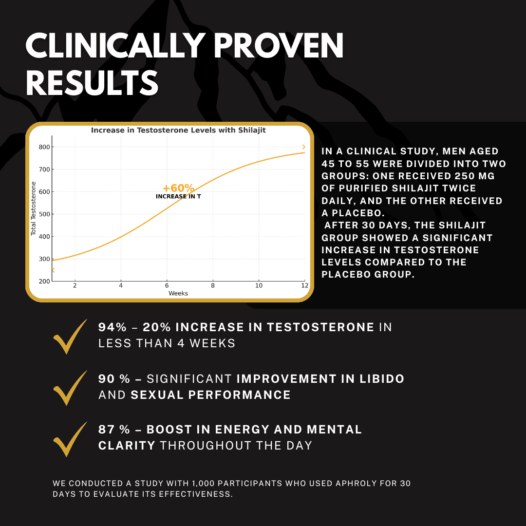 The outcome was clear: those who took Shilajit naturally elevated their testosterone, regained their vitality, and reported an overall improvement in energy and well-being — confirming what traditional medicine has known for centuries.